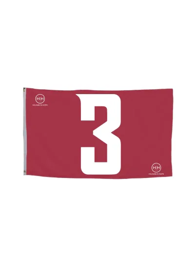Bold crimson design featuring the H3H “3” flag mark - 4 x 6 Flag